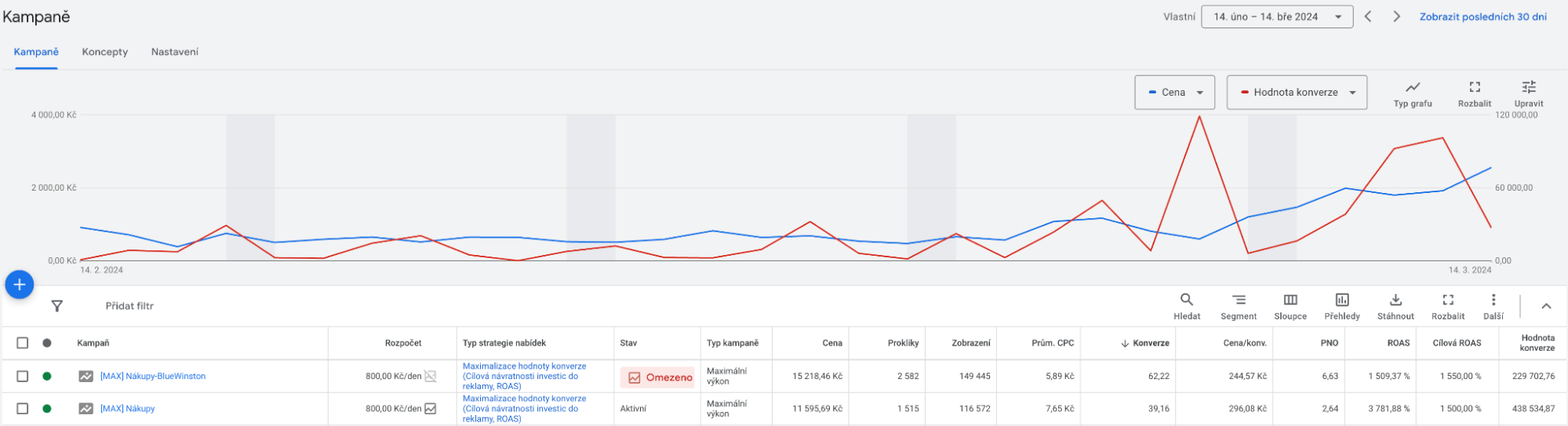 Je úžasné, že nenahrazujete svou nejvýkonnější kampaň, ale přidáváte další, která přináší levnější náklady na konverzi. V současnosti nejsme závislí pouze na jedné kampani, ale máme dvě, které jsou svou výkonností jednoznačně nejlepší v účtu.