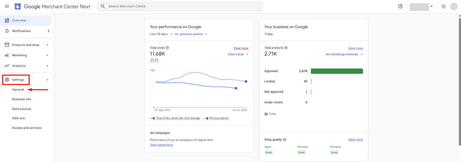 1. Použijte svůj účet Google Merchant Center. V EU je každý Merchant Center účet přiřazen CSS partnerovi. Účty, které jsou přiřazeny Google Shoppingu, vyžadují, aby majitel účtu ověřil a nárokoval své webové adresy. To znamená, že Google musí ověřit, že jste skutečně vlastníkem účtu. CSS Dashboard je dostupný pouze tehdy, pokud se Google Merchant Center nachází pod službou Google CSS, aby bylo zajištěno, že tato rozhodnutí skutečně provádějí vlastníci účtů a ne jejich CSS partneři.